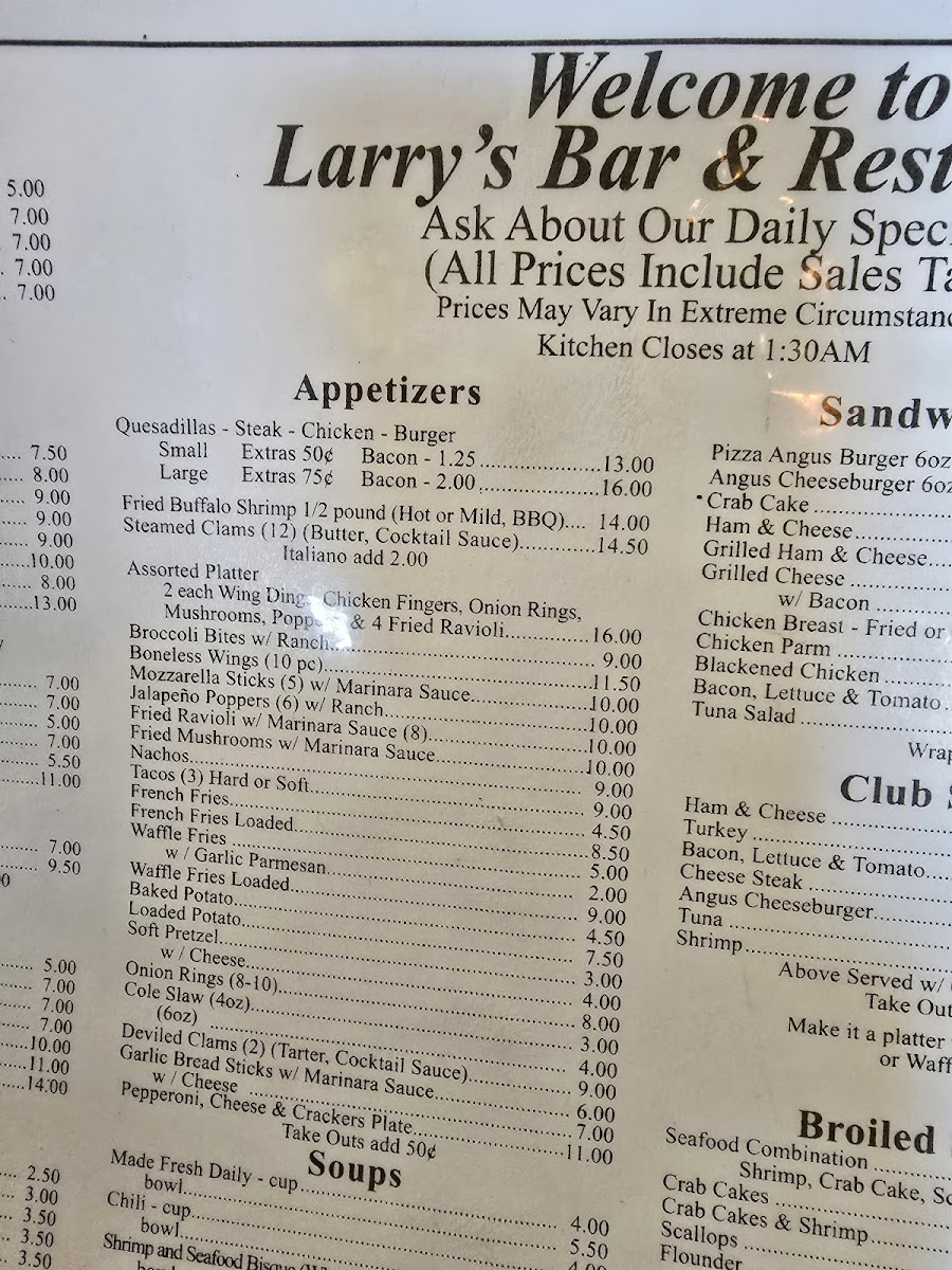 Welcome to Larry's Bar & Restaurant, a hidden gem nestled in Millville, NJ. Located at 1115 S 2nd St, this vibrant establishment has become a beloved local spot for food enthusiasts and nightlife seekers alike. With a charming atmosphere and an inviting spirit, Larry's is more than just a bar—it's a community hub where great conversations and delicious food collide.